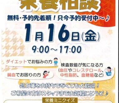 みなさまこんにちは、江田駅前薬局です。 先週の金曜日は栄養相談会でした。 今回は、お馴