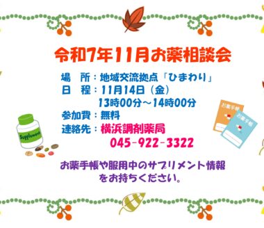 令和7年11月14日(金)地域交流拠点ひまわり🌻にてお薬相談会を開催致しました。 今