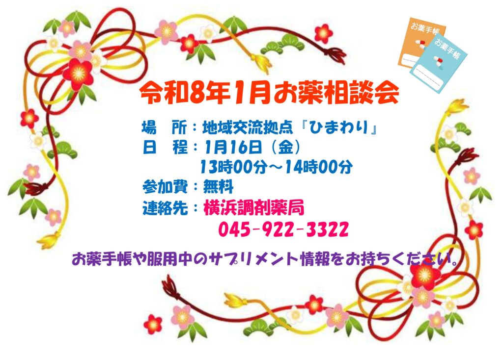 地域交流拠点『ひまわり』🌻でのお薬相談会は1月16日(金)13時~14時に開催です。