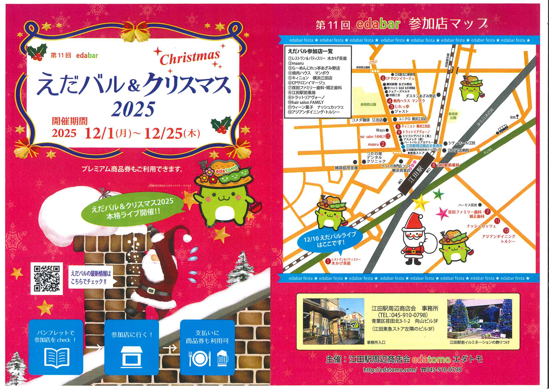 えだバルメニューや期間限定でのサービスがありますので是非江田駅周辺商店会に出かけてお得を満喫してください。