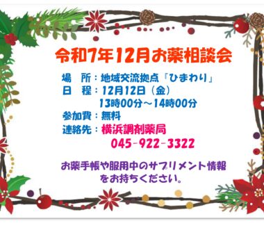令和7年12月12日(金)地域交流拠点ひまわり🌻にてお薬相談会を開催致しました。 今