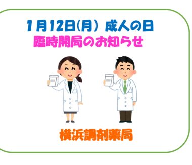 令和8年1月22日(月)成人の日 臨時開局のお知らせ
