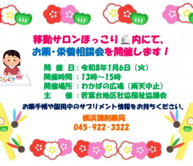 毎月恒例の移動サロン『ほっこり』にて おくすり、栄養相談会を開催いたしました✨ ご質問